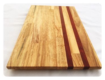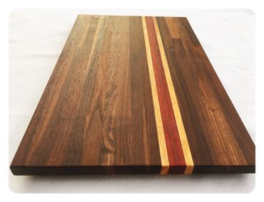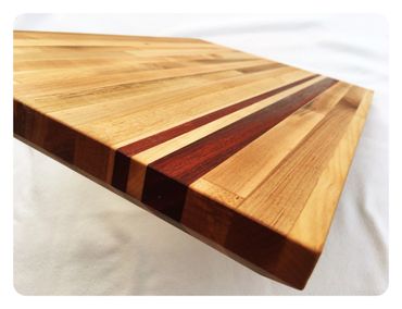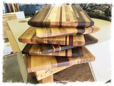 Who doesn't need a beautiful cutting board? Our durable cutting board are made from a variety of domestic and foreign hardwoods and have a unique beveled design that makes it easy to pick up off the counter. **Food actually tastes better when it has been prepared on a custom-made AZBB Cutting Board.